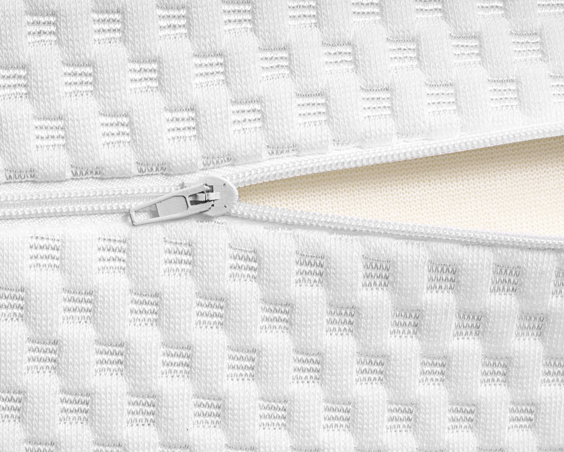 De kern van 100% viscogeltraagschuim vormt zich naar jouw lichaam — stevig waar het moet, zacht waar het kan. Door de perforaties in het schuim blijft het kussen ademend, wat oververhitting voorkomt en vochtregulatie bevordert. Zo behoud je een constant, aangenaam slaapklimaat, de hele nacht door.